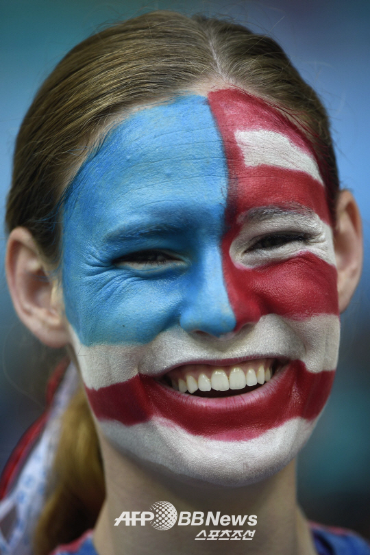 2014 월드컵 16강전 미국과 벨기에의 경기가 브라질 살바도르의 폰테 노바 아레나에서 펼쳐 졌다. 얼굴에 페인팅을 한 미국 팬이 자국팀을 열열히 응원하고 있다. 벨기에는 연장 접전 끝에 미국을 2대1로 누르고 8강에 진출 했다.