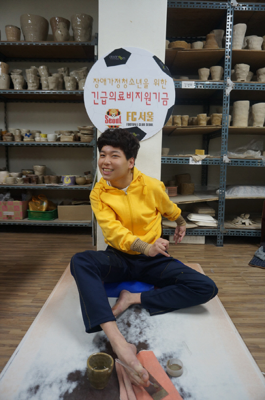 윤씨는 "재활치료를 다시 받게 돼 너무나 기쁘고 감사하다. 발 기능을 향상시켜 섬세한 작품을 만들고 싶다"고 했다. 윤씨 외에도 뇌병변장애, 지적장애를 앓고 있는 장애가정 청소년 4명에게 수술비 및 재활치료비를 전달, 사회 구성원으로서 당당히 살아 갈 수 있는 용기를 전했다.