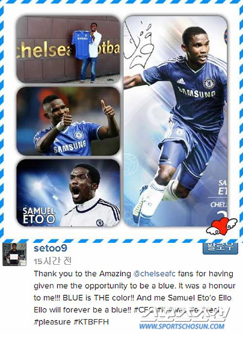 첼시를 떠나는 사무엘 에투(36)가 첼시 팬들에게 마지막 인사를 전했다.