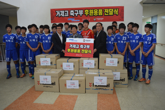 2일 거제고등학교에서 대우조선해양 정성대 상무, 거제고등학교 윤정업 교장, 경남FC 박재영 단장이 참석한 가운데 유니품과 트레이닝복, 운동화 등 2,000여만원 상당의 축구 용품 전달식을 가졌다. 경남FC와 대우조선해양은 이번 1차 용품 전달 이후 9월 2000여만원 상당의 축구 용품 2차 후원을 계획하고 있다.