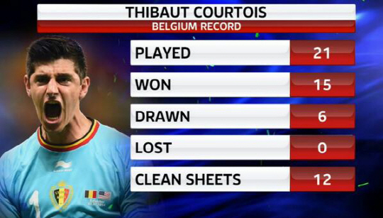 19세 때인 지난 2011년 국가대표로 데뷔한 쿠르투아는 이후 자신이 피치에 나선 21경기 동안 15승 6무를 기록, 무패 행진을 이어가고 있다. 그중 클린 시트(무실점 경기)도 무려 12경기나 된다.