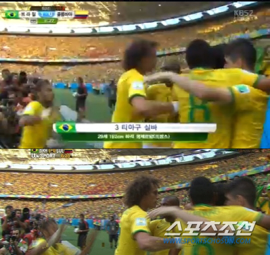 네이마르(바르셀로나)는 5일(한국시각) 브라질 포르탈레자 에스타디오 카스텔랑에서 열린 콜롬비아와의 2014년 브라질월드컵 8강전 선제골을 도왔다. 전반 7분 왼쪽에서 네이마르가 올린 날카로운 코너킥을 주장 티아구 시우바가 수비진을 모두 따돌리고 영리하게 밀어넣었다. 콜롬비아는 가까운 쪽 포스트에 신경 쓴 나머지 뒤로 돌아들어오는 시우바를 놓쳤다. 이른 시간에 기선제압에 성공한 브라질 선수들은 기쁨을 만끽했다. 네이마르가 코너킥을 올린 반대쪽 코너에서 모두 얼싸안으며 골 세리머니를 펼쳤다. 네이마르는 그라운드를 가로질러 동료들을 향해 질주하다, '고지'에 거의 임박해서 그만 '꽈당' 넘어지고 말았다. 미끄러운 잔디탓에 미끄러지며, 세리머니에 가세하지 못했다.