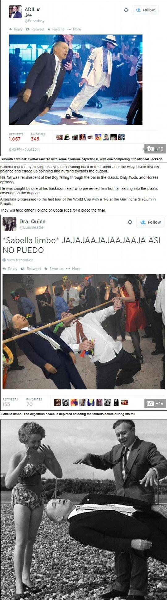 영국 일간지 데일리메일은 이 장면을 놓치지 않았다. 사베야 감독의 순간 졸도 장면을 게임 스트리트파이터를 비롯해 영화 매트릭스, 번지점프 등 다양한 패러디로 재현해냈다. 특히 마이클 잭슨의 춤에도 패러디돼 폭소를 자아냈다.