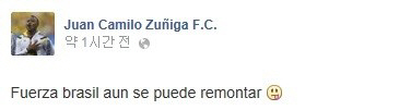 네이마르(22)에게 부상을 입힌 콜롬비아 수비수 후안 카밀로 수니가(29)가 브라질을 응원했다.