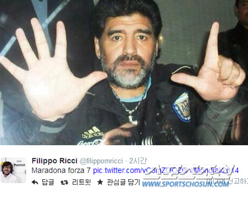 9일 이탈리아 언론 가제타 델로 스포르트의 필리포 리치 기자는 자신의 SNS에 마라도나의 사진 한 장을 올렸다.