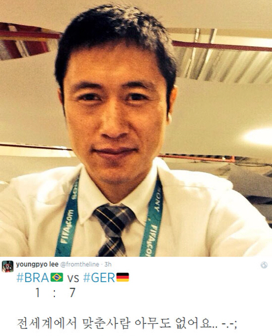 이에 이영표는 중계 후 자신의 트위터에 "브라질vs독일 1:7, 전 세계에서 맞춘 사람 아무도 없어요"라는 글을 남겼다.