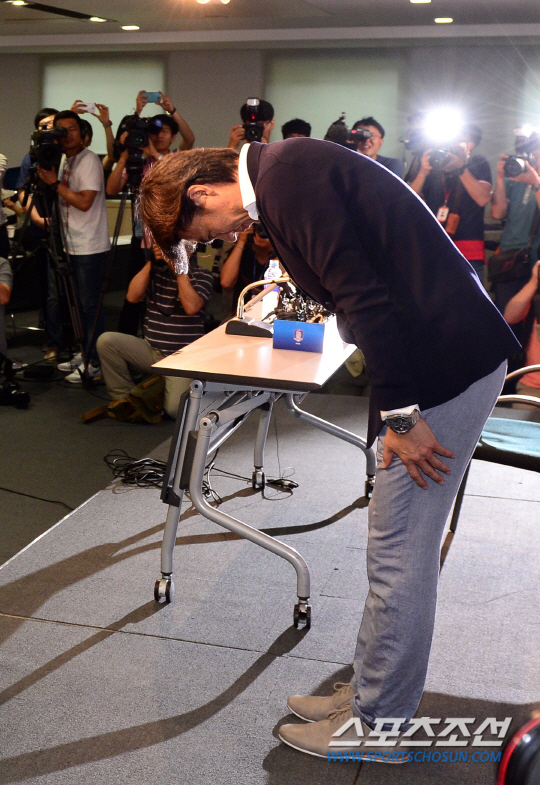 홍 감독은 이 자리에서 "알제리전 끝나고 사퇴하고자 마음먹었다. 벨기에전 후에는 실제적으로 사퇴 의사를 말했다"고 밝혔다. 인천공항에 와서 바로 사퇴를 표하지 않은 것에 대해서는 "간단히 사퇴를 말했다면 비난을 피해갈 수는 있었을 것이다. 하지만 비난받는 것까지 제 몫이라고 생각했다. 사퇴하고 비난을 피했다면 무책임하다고 생각했다"고 설명했다. 이어 홍 감독은 "돌아온 뒤 내 능력을 판단했을 때, 그리고 한국에 돌아와서 반성의 시간을 가졌을 때 '사퇴'라는 결론을 냈다"고 했다. 홍 감독은 "월드컵 기간 중 경기력과 기술적인 문제에 있어서 모든 것들을 판단하고 결정했다. 순간 순간은 최선이라고 생각했다. 하지만 결과적으로는 많은 실패가 있었다. 또 저 자신이 성숙하지 못했기 많은 오해가 생겼다. 죄송하다"고 사과했다. 이 건 기자 bbadagun@sportschosun.com
