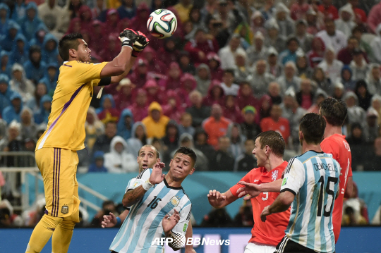 아르헨티나는 10일(한국시각) 브라질 상파울루의 아레나 코린치안스에서 열린 2014년 브라질월드컵 4강전에서 네덜란드를 승부차기 끝에 제압했다. 정규시간 90분과 연장 30분동안 득점을 기록하지 못한 두 팀은 승부차기에 돌입했다. '11m의 러시안 룰렛'에 운명이 엇갈렸다. 로메로가 '히어로'가 됐다.