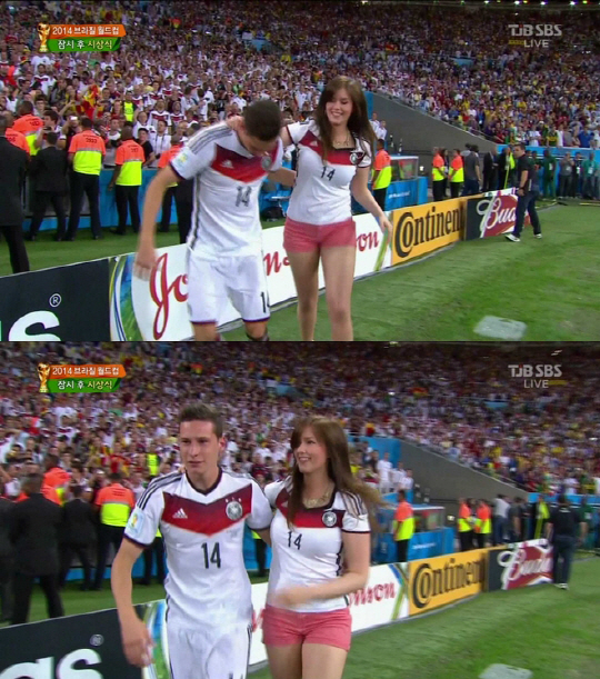 14일 독일이 대회 결승전에서 아르헨티나를 연장 접전 끝에 1대0으로 누르고 24년만에 4번째 우승컵을 들어올린 직후 중계 카메라엔 드락슬러의 여자친구 레나 테를라우가 그라운드에서 우승의 감격을 함께 나누는 모습이 포착됐다.