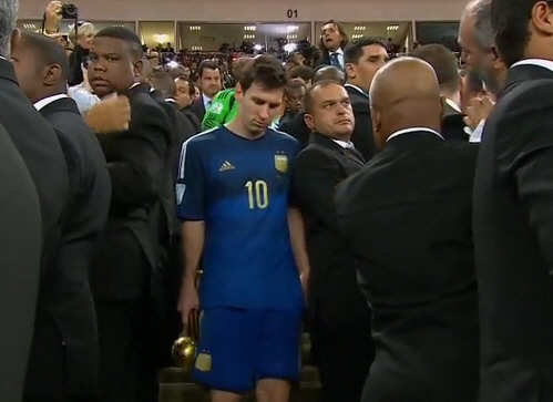 아르헨티나 에이스 리오넬 메시(바르셀로나)는 월드컵 개인 최고의 영예인 골든볼을 수상했지만 웃을 수 없었다.