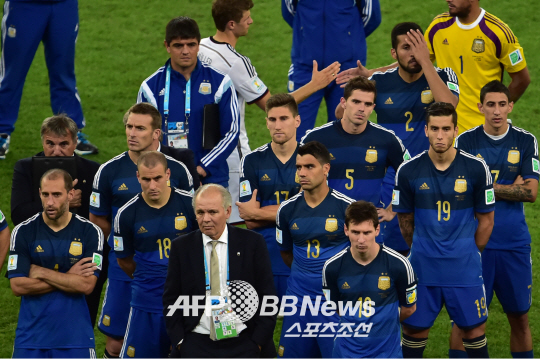독일이 14일 오전(한국시간) 브라질 리우 데 자네이루의 에스타디오 두 마라카낭에서 열린 2014년 브라질월드컵 결승전에서 아르헨티나를 1-0으로 꺾고 우승컵을 들어올렸다. 연장 접전끝에 패한 아르헨티나 선수들이 침통해 하고 있다.
