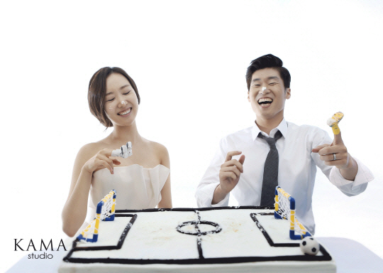 박지성 김민지 웨딩화보 공개, 캡틴의 '함박미소'..."사랑스러운 커플"