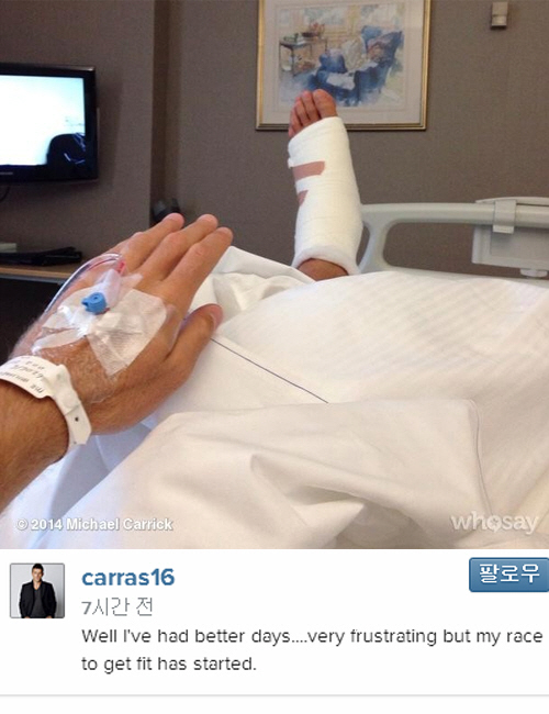 맨체스터 유나이티드(이하 맨유)의 마이클 캐릭(33)이 발목 부상 인증샷을 공개했다.