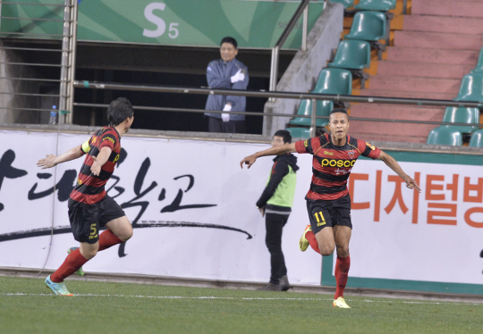 강수일의 활약에 신광훈의 페널티킥골을 보탠 포항은 부산을 2대0으로 완파했다. 포항은 승점 33이 되면서 클래식 선두 자리를 굳게 지켰다. 지난해 3월 이후 4경기 연속 무승(2무2패)에 그쳤던 부산전 징크스도 깨끗하게 씻으면서 '영일만 찬가'를 불렀다.