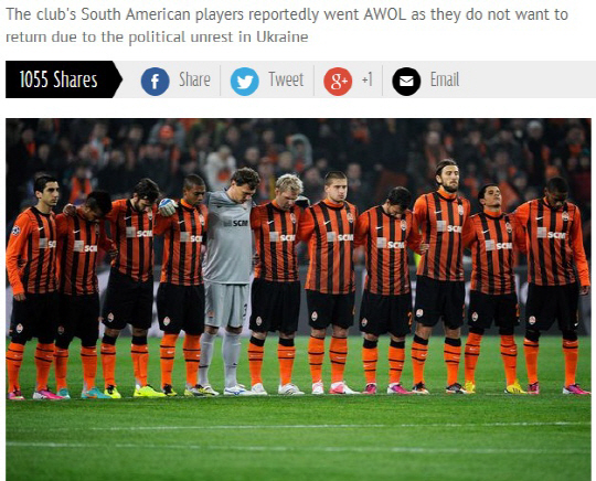21일(한국시각) 프랑스 방송 카날플러스는 프랑스에서 프리시즌 친선경기를 마친 6명의 샤흐타르 선수가 우크라이나행 비행기를 타지않고 팀을 이탈했다고 보도했다. 이들 6명은 브라질 출신의 더글라스 코스타, 프레드, 덴팅요, 알렉스 테세이라, 아르헨티나의 파쿤도 페레이라 등으로 모두 남미 출신이다. 이들이 복귀를 거부한 이유는 우크라이나가 정치적 이유로 혼란을 거득하고 있기 때문이다. 이들은 모두 다른 리그로 이적을 원하고 있는 것으로 알려졌다. 간판스타들의 복귀 거부로 샤흐타르의 다음시즌 운용에도 차질을 빚을 것으로 보인다.