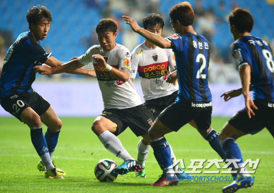 4월에 열린 클래식 8라운드 이후 순위표 맨 윗자리는 포항이 지키고 있다. 17라운드에서도 여전했다. 하지만 불안한 선두다. 2~5위와의 격차가 더 좁혀졌다. 포항은 23일 인천축구전용구장에서 열린 인천과의 17라운드에서 0대0 무승부를 기록했다. 승점 1을 추가하는데 그쳤다. 항상 인천만 만나면 어렵게 경기를 푸는 포항의 징크스는 이날도 계속됐다. 경기 주도권을 빼앗겼다. 볼점유율에서 4대6으로 밀렸다. 초박빙 선두싸움이 벌어지고 있는 상황에서 승점 1을 따낸 것이 다행이었다.