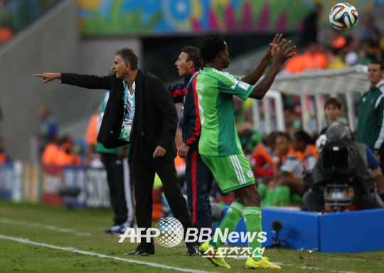이란의 케이로스 감독이 브라질월드컵 나이지리아전에서 선수들에게 지시를 내리고 있다. ⓒAFPBBNews = News1
