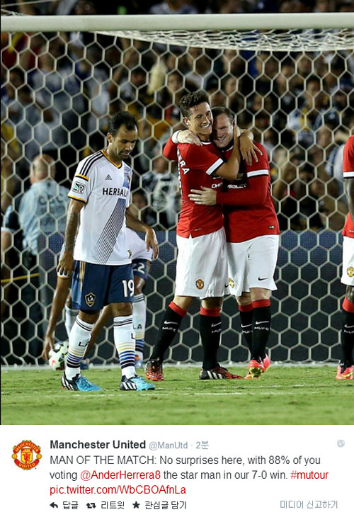 맨체스터 유나이티드(이하 맨유)의 팬들이 가슴 뛰는 프리시즌 첫 승의 주역으로 안더르 에레라(25)를 꼽았다.