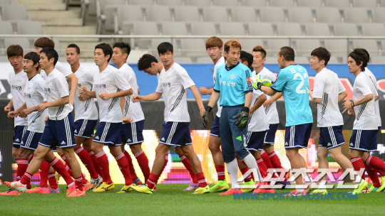 24일 오후 6시, 상암벌의 하늘에 별들이 수놓였다. 서울월드컵경기장에 한국 축구의 얼굴들이 한 자리에 모였다. 황선홍 포항 감독과 이근호(상주) 김신욱(울산)이 포진한 '팀 K-리그', 거스 히딩크 감독과 박지성, 이영표가 버틴 '팀 박지성'이 2014년 K-리그 올스타전 공식 훈련에 나섰다. 잔뜩 굳은 날씨, 이른 시간에도 팬들은 아랑곳 않았다. 200여명의 팬들이 서울월드컵경기장에 모여 별들의 일거수 일투족에 주목했다.