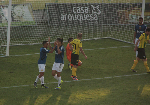 | 선제골을 터뜨린 석현준이 도움을 준 카마초와 하이파이브를 하고 있다. ⓒC.D.나시오날 |