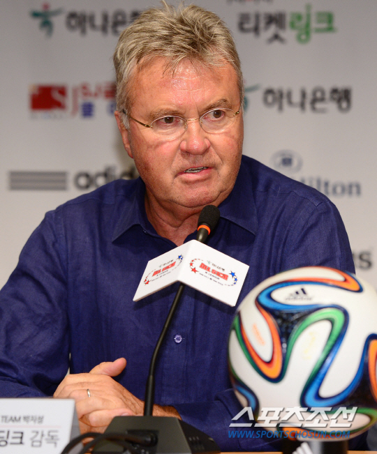 히딩크 감독은 25일 서울 조선호텔에서 정몽준 대한축구협회 명예회장, 박지성 이영표 등과 오찬을 갖기에 앞서 취재진과 만나 "내가 지금 한국 축구에 속해 있지 않기 때문에 판단을 내리기는 어려운 상황이다. 하지만 이용수 신임 기술위원장을 선임한 만큼 천천히 감독 선임 과정을 밟아가야 한다"고 밝혔다.