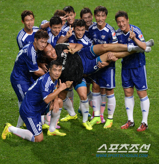 K리그 올스타 with 팀 박지성이 25일 서울월드컵경기장에서 열렸다. 이종호의 골때 선수들이 벤치에 있던 김신욱과 낚시 세리머니를 하고 있다. 이번 '2014 K리그 올스타전'은 올스타전 경기는 K리그 올스타 팀과 박지성이 꾸린 팀의 맞대결로 펼쳐진다. 은퇴한 한국 축구의 아이콘 박지성, 이영표 등 스타들은 '팀 박지성'에 포함돼 올스타들에게 맞선다. K리그 구단의 사령탑들이 올스타전의 감독, 코치, 심판으로 활동하는 모습도 볼 수 있다. 상암=허상욱 기자 wook@sportschosun.com