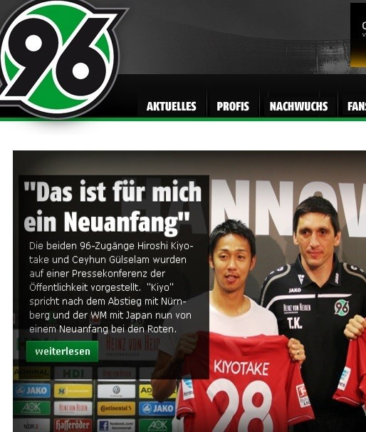 일본 대표팀의 공격수 기요타케 히로시(25)가 하노버96으로 이적했다.