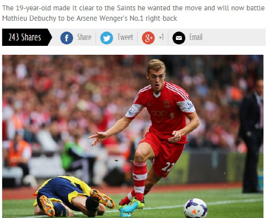 아스널이 사우스햄턴의 오른쪽 윙백 칼럼 체임버스 영입이 임박했다.