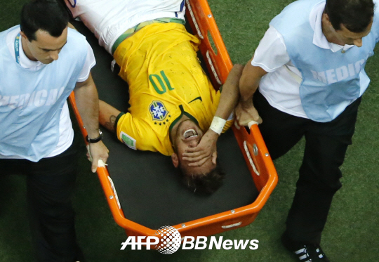 네이마르는 콜롬비아오의 2014년 브라질월드컵 8강전 후반 종료 직전 카밀로 수니가의 무릎에 허리를 맞아 그대로 쓰러졌다. 진단 결과 요추 골절을 한 것으로 드러나 그대로 대표팀에서 하차했다. 우승을 자신했던 개최국 브라질은 네이마르의 이탈 뒤 가진 독일과의 4강전에서 1대7이라는 역사적 참패를 당한데 이어 3, 4위 결정전에서도 네덜란드에 완패하면서 온갖 비난에 시달렸다. 브라질축구협회는 대회 직후 루이스 펠리페 스콜라리 감독이 물러난 자리에 둥가 감독을 앉힌 상태다.