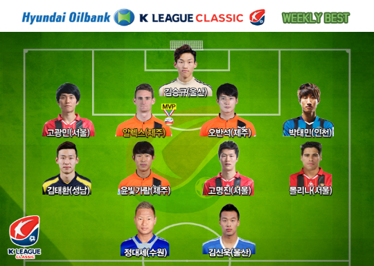 프로연맹은 17라운드 베스트 11도 공개됐다. 김신욱(울산)과 정대세(수원)이 최고의 공격수로 뽑힌 가운데 베스트 미드필더에는 몰리나, 고명진(이상 서울) 윤빛가람(제주) 김태환(성남)이 선정됐다. 최고의 수비수는 알렉스를 비롯해 오반석(제주) 박태민(인천) 고광민(서울)이 이름을 올렸고, 수문장 자리는 울산의 월드컵스타 김승규에게 돌아갔다. 서울은 17라운드 최고의 팀에 선정됐거, 제주-전남전(2대0 제주 승)은 17라운드 베스트매치로 꼽혔다.