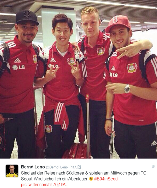 레버쿠젠의 골키퍼 베른트 레노(22)는 29일 자신의 SNS에 "한국 여행을 왔다. 수요일에는 FC서울과 경기를 갖는다"라는 글과 함께 사진 한 장을 공개했다.