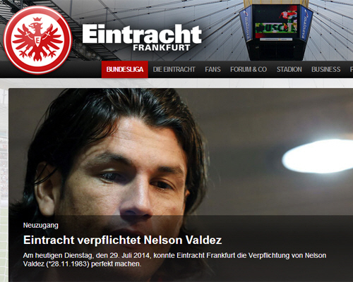 아인트라흐트 프랑크푸르트는 29일(한국시각) 공식 홈페이지를 통해 발데스와 2년 계약을 맺었다고 발표했다. 등번호는 11번. 프랑크푸르트의 브루노 허브너 단장은 "넬슨 발데스의 풍부한 경험을 높게 평가해 영입했다"라고 밝혔다.