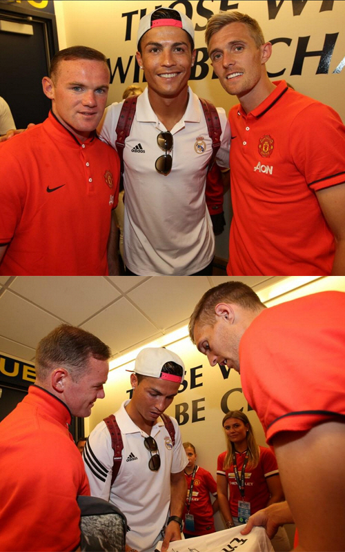맨유 공식 트위터는 호날두가 맨유 선수들에게도 높은 인기를 자랑했다며 여러 장의 사진을 공개했다. 호날두는 대런 플레처에게 사인 저지에 선물하는가 하면, 플레처-루니 등과 인증샷을 찍는 등 친절한 '팬서비스'에 나섰다.