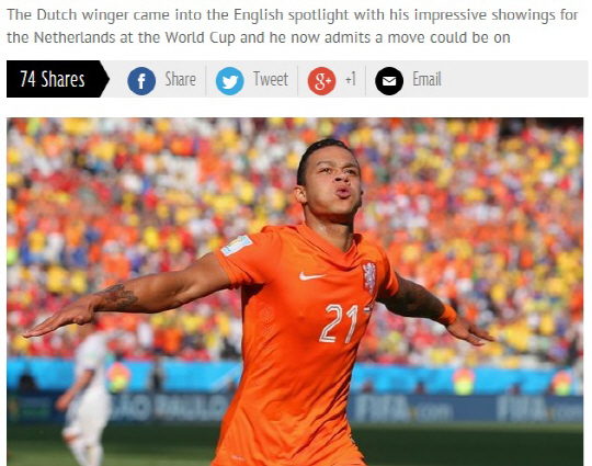 브라질월드컵을 통해 스타로 떠오른 멤피스 뎀파이(PSV에인트호벤)가 이적을 암시했다. 뎀파이는 맨유와 토트넘의 러브콜을 받고 있다. 뎀파이는 "나는 PSV에서 할일을 했다. 좋은 클럽에서 제안이 온다면, 진지하게 고려를 해볼 것이다. 많은 러브콜이 있었다. 물론 잔류하는 것도 방법 중 하나다"며 "나는 PSV에서 뛰길 원하는 팬들의 마음도 이해한다. 그러나 나는 내 커리어를 어떻게 끌고 갈지 결정해야 하는 사람"이라고 했다. 맨유는 루이스 판 할 감독과의 인연을 들어, 토트넘은 확실한 주전자리 보장을 들어 뎀파이의 영입을 노리고 있다.