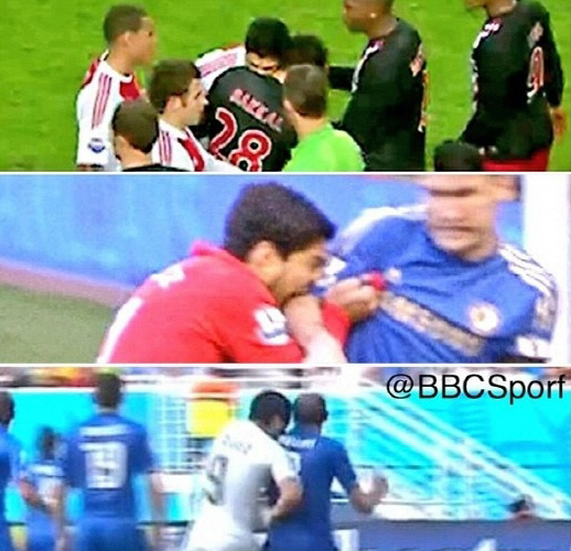BBC스포츠는 SNS를 통해 3장의 사진과 함께 '쇼킹! 수아레스가 아약스-첼시-이탈리아전에서 물어뜯기 해트트릭을 달성했다'고 썼다.