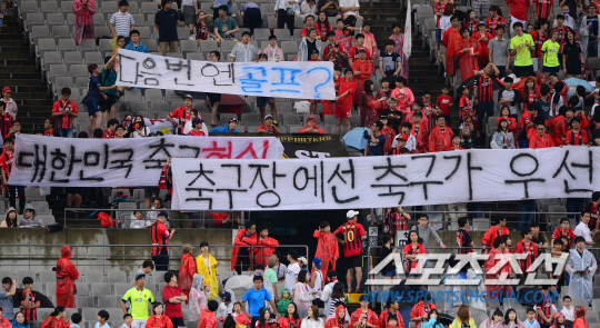 팬들도 화났다. 휘슬이 울리자 서울 서포터스 수호신은 3분간 침묵 시위를 했다. 7개의 플래카드가 그 자리를 대신했다. '다목적 잔디광장', '다음번엔 골프?', '대한민국 축구 현실', '축구장에선 축구가 우선', '중계도 X, 자리도 X 슌, 'E-side BREAK', '지못미 , 서울WCㅠㅠ' 등으로 서울월드컵경기장의 오늘을 '규탄'했다.