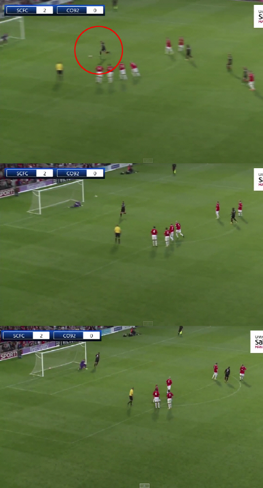 힘차게 도움닫기를 한 긱스는 슈팅 순간 힘을 빼고 가볍게 띄워차는 이른바 '파넨카킥'을 선보였다.