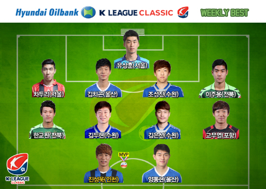 한국프로축구연맹은 13일 인천 공격수 진성욱을 클래식 20라운드 최우수선수(MVP)로 선정했다. 진성욱은 20라운드 베스트11에서도 양동현 김치곤(이상 울산) 김은선 김두현 조성진(이상 수원) 차두리 유상훈(이상 서울) 한교원 이주용(이상 전북) 고무열(포항) 등 쟁쟁한 선배들과 어깨를 나란히 했다.