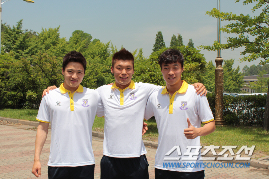 '전남 영건 삼총사' 김영욱 이종호 안용우(왼쪽부터)가 14일 오전 발표된 인천아시안게임 최종 명단에 나란히 이름을 올렸다. 사진제공=전남 드래곤즈