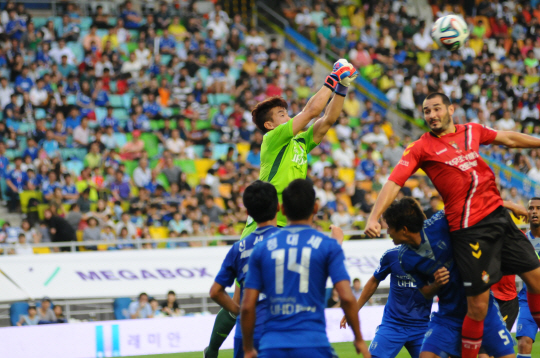 그런데 변수가 등장했다. 아시안게임 와일드카드로 김승규(24·울산)의 승선이 유력하다. 골키퍼는 특수 포지션이다. 한 번 주전이 정해지면 여간해서는 바뀌지 않는다. 프로 정식 경기에서 2번 밖에 나서지 못한 노동건으로서는 월드컵 대표팀에서 골문을 지킨 김승규와의 경쟁이 어려울 수 밖에 없다. 하지만 노동건은 크게 신경쓰지 않았다. '피할 수 없으면 즐겨라'는 마음이었다. 노동건은 "어차피 선수라면 경쟁을 피할 수 없다. 나만의 무기가 있다. (김)승규 형과 내가 동시에 아시안게임 대표팀에 선발된다면 즐겁게 경쟁할 것이다"고 했다. 프로 새내기의 말에서 경력 10년 이상 베테랑의 내음이 풍겼다.