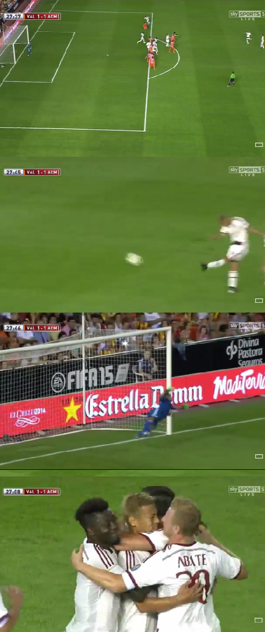 혼다는 17일 열린 스페인 발렌시아와의 프리시즌 친선전(1대2 패배)에서 0-1로 끌려가던 전반 27분 얻은 프리킥을 득점으로 연결시켜 팀의 선제골을 만들었다.