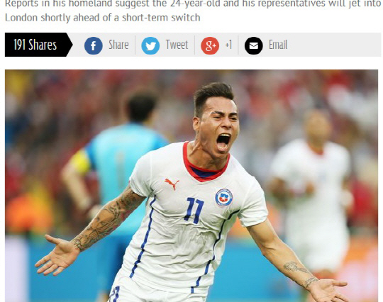 18일(한국시각) 영국 일간지 데일리미러는 아스널이 에두아르도 바르가스를 임대 영입할 예정이라도 보도했다. 아스널은 이미 알렉시스 산체스라는 칠레 최고의 공격수를 3500만파운드에 영입한 바 있다. 추가 영입을 노리던 아르센 벵거 감독은 최전방과 측면, 수비까지 볼 수 있는 바르가스를 1년 임대로 데려올 계획을 세웠다. 바르가스는 산체스와 함께 브라질월드컵에서 칠레의 최전방을 이끌었다. 칠레 언론 역시 바르가스와 그의 에이전트가 런던으로 건너가 최종 협상을 마무리지을 것이라고 보도한 바 있다.