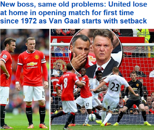 프리시즌까지만 해도 분위기가 좋았다. 스리백이 정착되는 듯 보이며 기네스컵을 들어올렸다. 지난시즌 부진을 씻고 새출발을 위한 스완지시티와의 올시즌 개막전. 결과는 충격적인 1대2 패배였다. 루이스 판 할 감독은 "어떤 팀이던 내 첫 3개월은 좋지 못했다"고 위안을 삼았지만, 다시금 유럽챔피언스리그에 나가기 위해서는 해결해야 할 점이 너무 많아 보인 경기였다. 일단 판 할 감독은 선수 영입을 통해 문제를 고칠 것으로 보인다. 판 할 감독은 선수층의 두께에 대해 불만을 표시했다.
