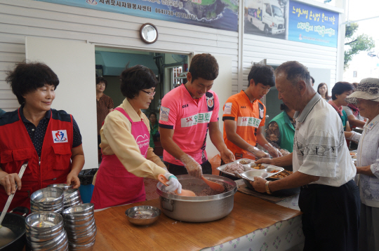 제주유나이티드(SK에너지 축구단)가 '참! 좋은 사랑의 밥차' 이벤트를 이어가며 따뜻한 이웃사랑을 실천했다.