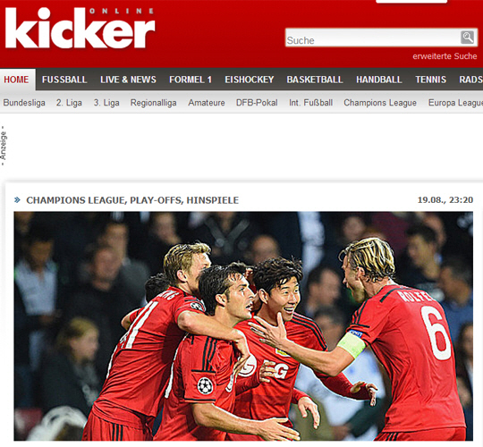 손흥민 골 레버쿠젠 코펜하겐, 독일의 손흥민 영국의 기성용 파이팅", "