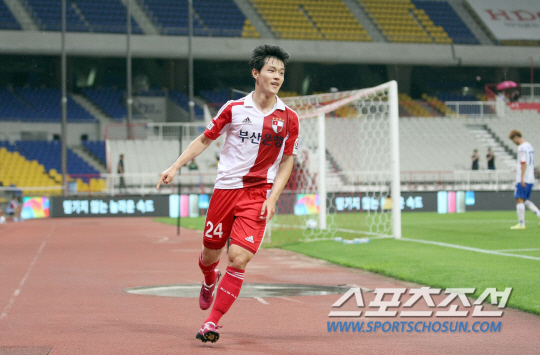 ◇주세종은 지난달 16일 하나은행 FA컵 수원FC와의 16강전에서 프로 첫 골을 쏘아올리며 3대2 승리를 이끌었다. 사진제공=부산 아이파크
