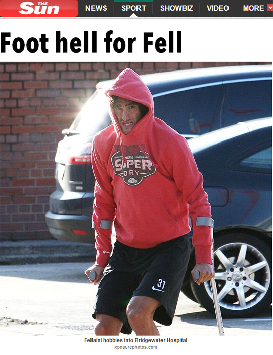 영국 언론 더 선은 20일 목발을 짚은 채 맨체스터의 브리지워터 병원을 찾은 펠라이니의 사진을 공개하며 "맨유가 또다시 고난에 빠졌다. 펠라이니가 왼발 부상을 입었다"라고 보도했다.