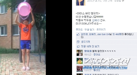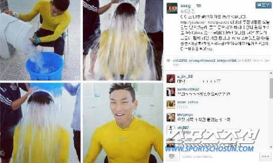독일 분데스리가를 맴돌던 아이스버킷도 '손세이셔널' 손흥민(레버쿠젠)을 매개로 한국으로 넘어왔다. 톨가이 아슬란의 지목을 받은 손흥민은 20일 챔피언스리그 플레이오프 1차전에서 골을 넣은 후 '아이스버킷 챌린지'에 동참했다. 팀동료 하칸 칼하노글루와 함께 얼음물을 뒤집어쓴 후 엄지를 치켜들었다. 절친 김신욱 윤일록 아이돌그룹 B1A4의 바로를 지목했다. "이번 아시안게임에서 좋은 활약을 해 줄 거라고 믿는 김신욱과 윤일록, 가수 B1A4의 바로씨가 해주시면 감사하겠다"고 말했다.