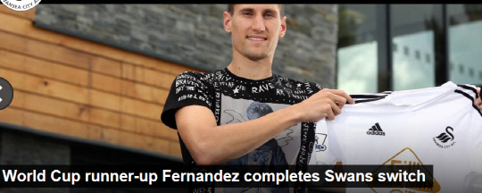 스완지시티는 20일(한국시각) 구단 홈페에지를 통해 페르난데스의 영입을 공식 발표했다. 계약기간은 4년이다. 영국의 일간지 데일리메일에 따르면 페르난데스의 이적료는 스완지시티 역대 최고액인 800만파운드(약136억원)다. 이는 2012년 여름, 기성용이 셀틱에서 스완지시티로 이적하며 작성한 구단 최고 이적료(600만파운드)를 뛰어 넘는 금액이다.