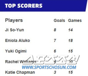 WSL만 놓고 보면 오기미 유키가 4골, 에니올라 알루코가 3골로 리그 득점 1-3위를 달리고 있지만 총득점에서는 지소연이 앞선다. 올시즌 리그-컵 경기를 모두 포함한 14경기에서 벌써 8호골째다. 리그 득점 1-3위를 넘어, 총득점에서 팀내 최다골을 기록중이다. 잉글랜드 국가대표 에이스 알루코(18경기 7골), 일본 국가대표 에이스 오기미 (15경기 6골)를 넘어섰다.